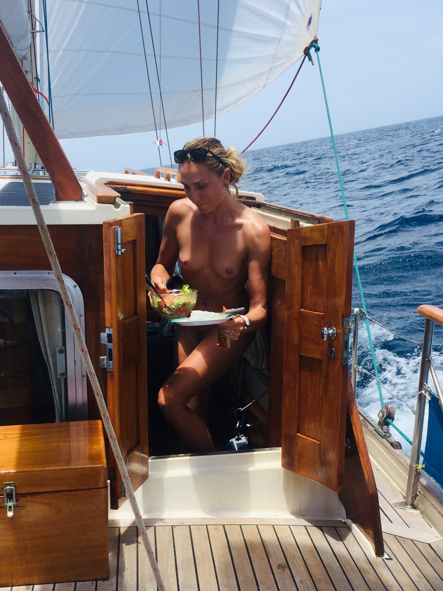 Nude on sailboat
